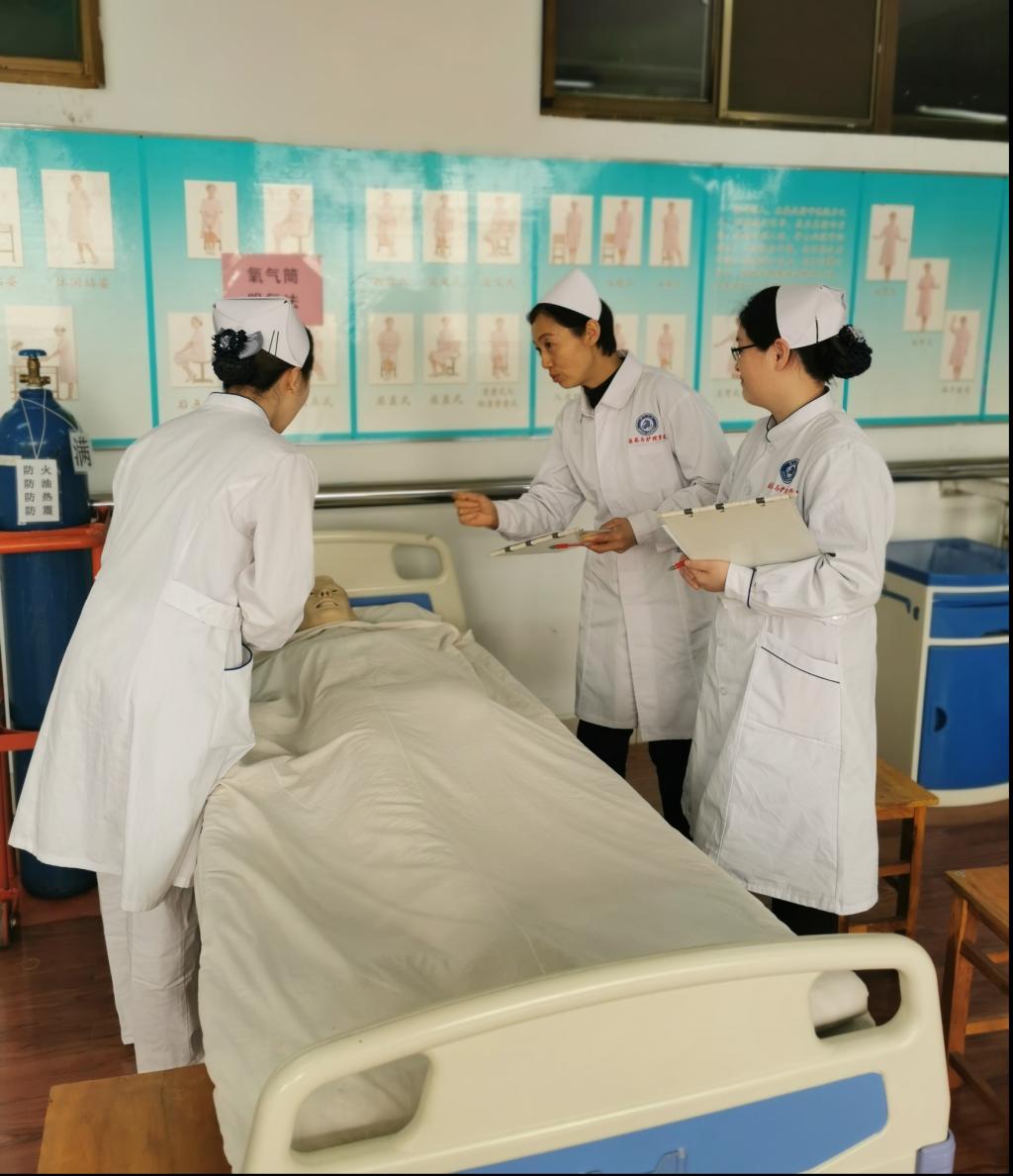 德州市第七人民医院护理部李晓霞主任莅临指导,查看同学们的比赛状况,指出操作中的问题,并强调护理技能操作一定要贴近临床、关注患者、注重沟通、重视人文,才能为患者提供优质护理服务。