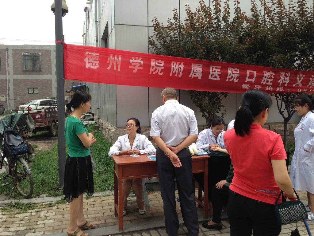 6月23日,德州学院附属医院口腔科义诊团到青年路小区,为小区居民进行口腔检查。在给居民指出其存在的口腔健康问题的同时,向居民们讲解口腔健康的重要性,怎样维护口腔健康,让小区居民了解口腔健康是维系生命质量的重要组成部分,是反映健康和生命质量的一面镜子,从而强化人们对口腔保健重要性的认识。