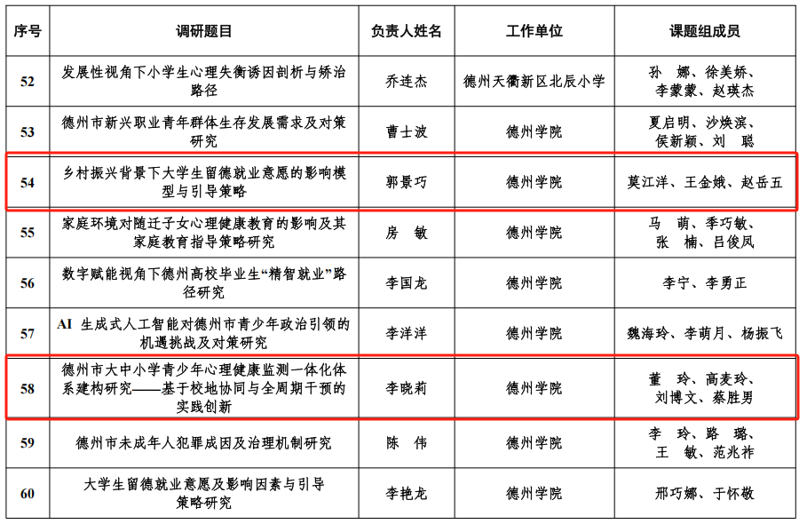 “调研德州”由市社科联、团市委、德州学院团委联合发布,聚焦青少年成长关键议题,旨在为地方青少年发展提供有力的智力支持。我院教师结合自身专业优势,深耕选题,围绕青少年发展的重点难点问题展开深入研究,最终凭借扎实的研究基础和创新的研究思路,成功斩获2项立项。