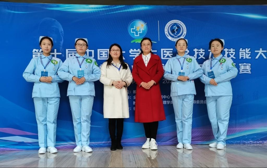 第十届中国大学生医学技术技能大赛护理学专业赛道是护理领域的年度盛事,此次专门开设护理学专业赛道,我校代表队首次参加。为组织好本次大赛,学院成立了以院领导为组长的领导小组,护理系、实验中心等多部门联动,保证参赛的圆满完成。指导教师现场指导,实行排班制,从学生礼仪、知识、技能和综合素质全面训练。通过规范各项护理操作标准,加强理论和实践的密切联系,提高学生学习能力、分析解决问题能力、创新能力、操作能力、沟通能力、彰显团队合作精神,使学校教学目标与临床护理工作需求更趋一致,实现学校护理教育与临床工作岗位紧密衔接。