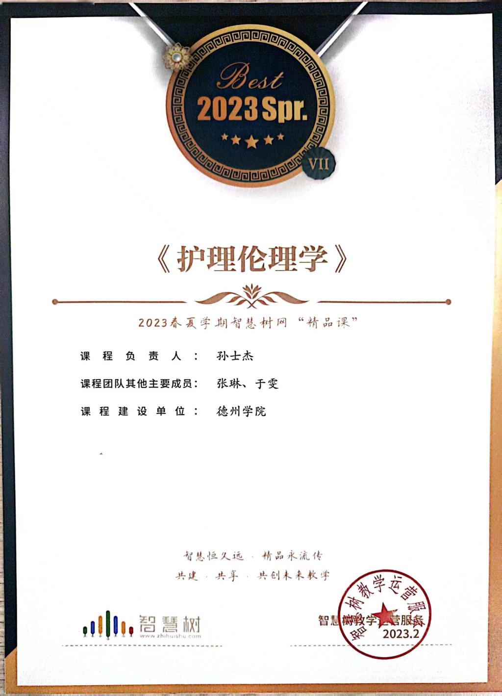 医药与护理学院《护理伦理学》课程荣获智慧树平台2023春夏学期“本科-专业精品课程”
