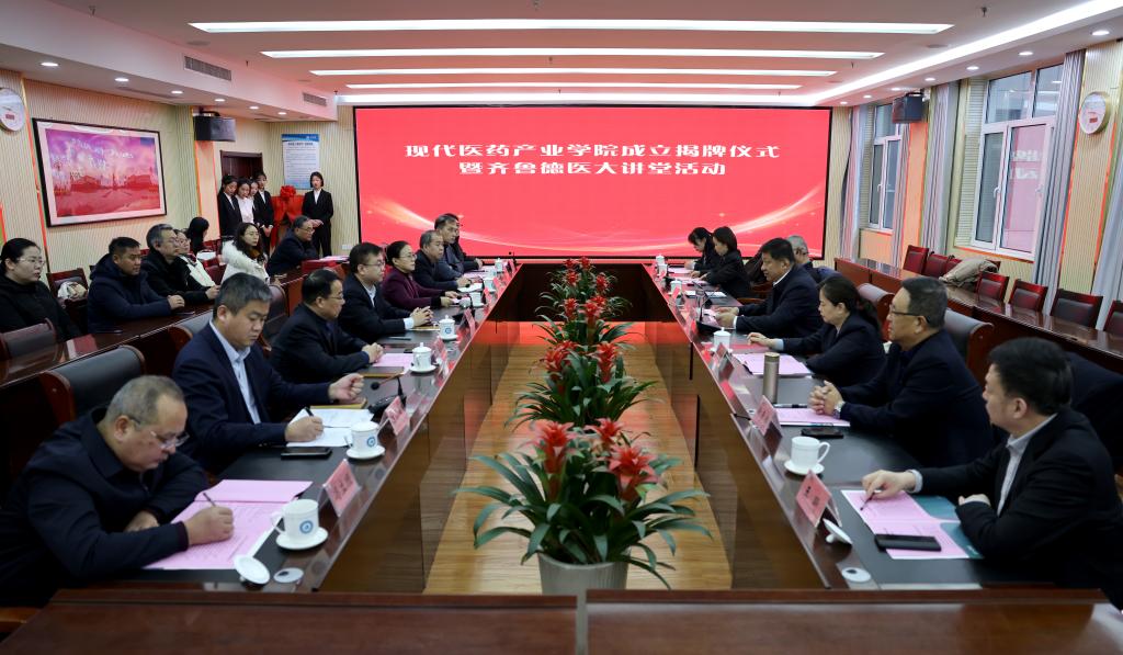 为进一步优化学科专业结构,加强学科专业建设,培育适合时代发展的应用型本科人才,12月13日,德州学院与山东大学齐鲁医院德州医院共建德州学院现代医药产业学院成立揭牌仪式在厚德楼二楼报告厅举行。市人大常委会副主任、山东大学齐鲁医院德州医院党委书记王晓东,山东大学齐鲁医院德州医院党委委员、副院长孙念政,台州学院医学院院长梁勇、教学办公室主任周玲玲,哈特瑞姆医疗集团院长张彦虎,山东大学齐鲁医院德州医院党委委员、护理部主任张彬彬,学校党委副书记、校长赵长林,德州学院党委委员、副校长徐静、单振涛出席会议。徐静主持会议。