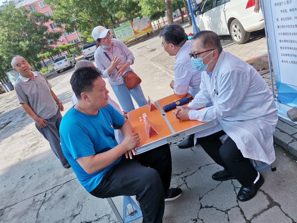 此次志愿服务包括健康知识座谈及义诊活动。座谈会上,与会党员本着“携手社区、健康惠民”的原则,围绕创新社区医疗健康务、建设红色驿站等内容进行交流,并对居民提供健康生活建议,倡导平衡饮食、坚持运动的健康生活理念。在长河小区的义诊现场,医药与护理学院的6名专业教师志愿者设置了消化内科、心血管内科、骨外科、普外科和口腔科等服务咨询点,为小区居民耐心解疑答惑、测量健康指标,提出日常预防、保健方案及治疗建议。学生党支部组成护理志愿服务团队,义诊实践中学真知、悟真谛,加强磨练、增长本领,服务人民、报效社会。