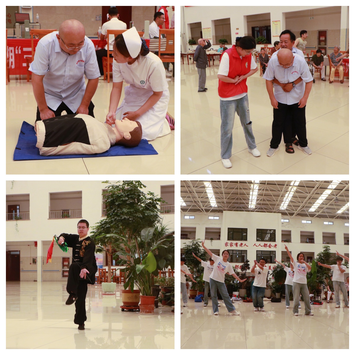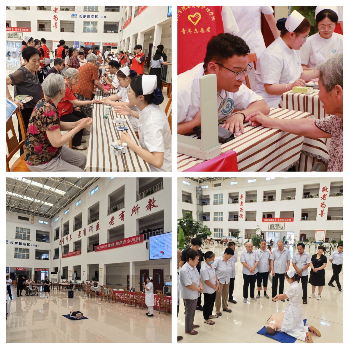南丁格尔志愿者依托自身医学专业知识,整合学院资源,为老年人提供量血压、测血糖的健康义诊服务,用通俗易懂的语言向老人们提出日常预防、保健方案及治疗建议。志愿者发放健康常识单页,进一步加强老年人对疾病和慢性病的认识和防范。此外,志愿者针对养老护理人员开展了海姆立克法和心肺复苏术等应急救护科普培训,提升护理员在突发事件中的救护能力。活动最后,志愿者为老人表演中华优秀传统文化太极拳、舞蹈等,用自己的实际行动诠释了尊老、爱老、助老的传统美德,不仅让老人们感受到精神上的关爱,更让志愿者们践行了历史文化的传承,充分展现了新时代青年的责任与担当。