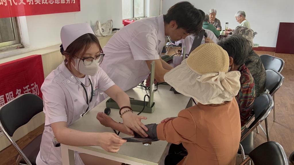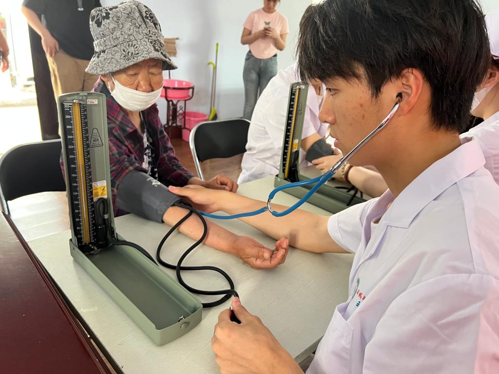 活动过程中,德州学院医药与护理学院团委书记蔡胜男与德城区广川街道文化社区负责人共同为大学生社区实践基地进行揭牌。揭牌仪式过后,在社区负责人陪同下,我院师生一同参观了社区工作和活动室,双方对下一步工作部署进行交流。随后,医药与护理学院志愿者前往文化社区进行公益义诊,为社区老年人科普预防高血压的方法,以及如何通过健康生活和科学用药避免高血压及并发症的产生,并免费为居民进行血压测量等。前来问诊的居民络绎不绝,大家有序排队进行咨询和检测,志愿者的耐心讲解和热情服务得到了社区居民的一致好评。