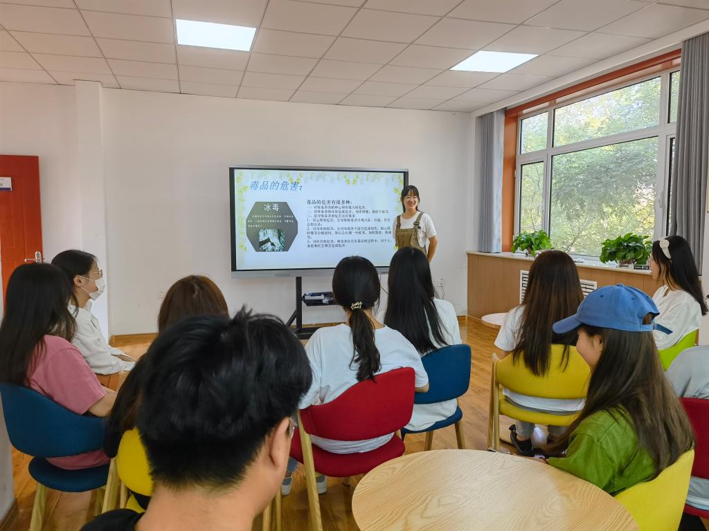 青春健康同伴社志愿者通过视频、实例以及现场互动答题等形式向大家详细介绍了毒品的种类、吸毒后的表现以及毒品的危害。最后,提醒大家一定要警惕毒品,保护好自己。此次宣讲活动开展十分顺利,在志愿者及同学们的配合下圆满结束。