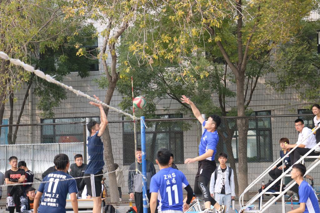 决赛双方为医药与护理学院和信息管理学院,开赛前赛场上早已人头攒动,两个学院的观众早早聚集在赛场翘首以待这场冠军争夺赛。比赛中,双方队员各施绝技,一个个精彩的拦网、传球、扣球、攻守博得观众阵阵喝彩,带给观众一场振奋人心的视觉盛宴。最终,医药与护理学院斩获冠军。