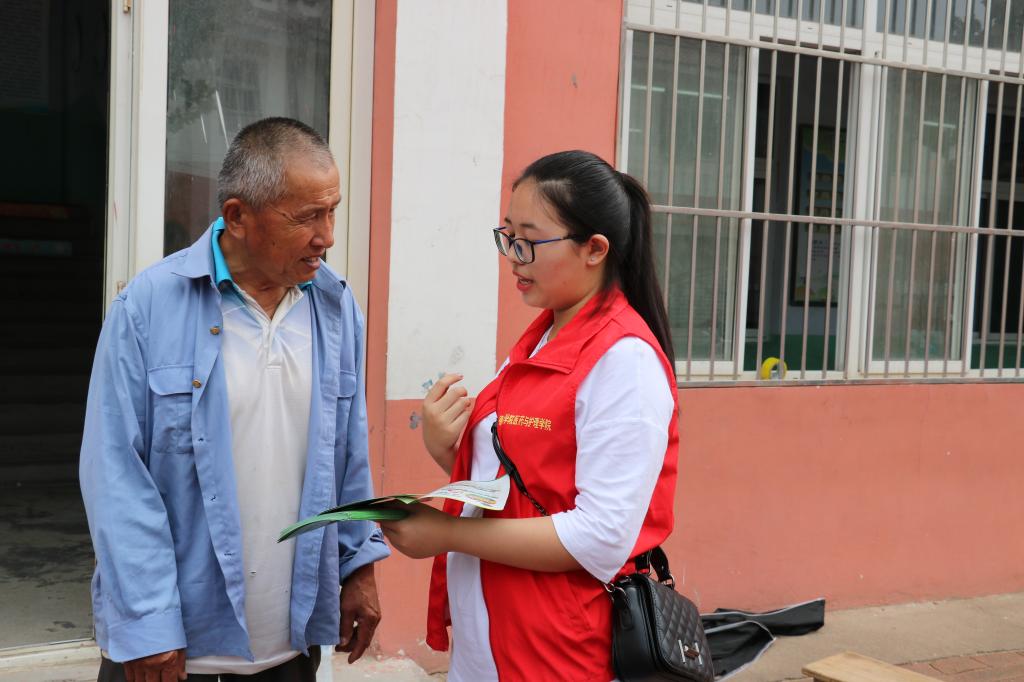 在三下乡社会实践活动中,医药与护理学院服务队以“携手医学梦,健康中国行”为主题,为社区居民、教师和第一书记们开展了测量血压、血型、血糖等健康普查,为农村留守老人和小学生开展安全教育,进行急救知识与技能培训,健康知识宣讲等一系列活动。志愿服务队充分利用宣传册、海报、标语等有效宣传工具,耐心、细致地为村民普及糖尿病防治知识、高血压防治知识、夏季预防肠道疾病的常识、夏日防中暑知识以及呼吸道传染病的个人防护措施,集中组织村民现场讲授心肺复苏技术以及常见外伤的紧急处理方法。