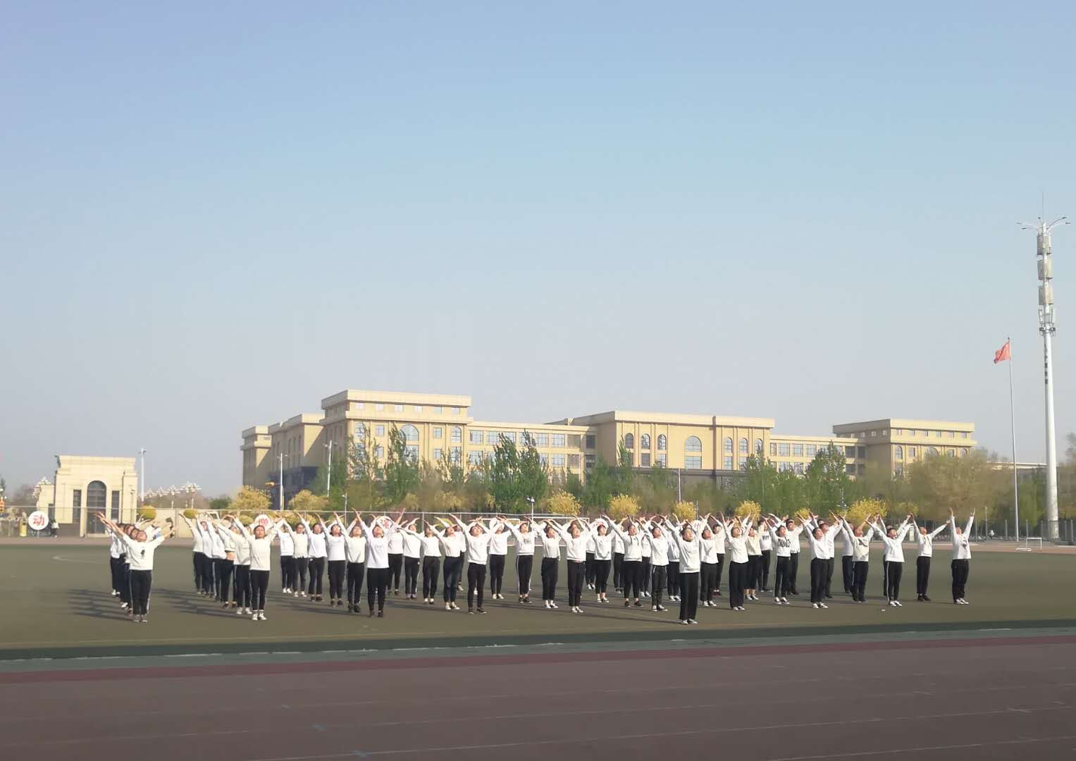 日在田径操场举行广播体操比赛,医药与护理学院学生积极参加比赛并取得第四名的优异成绩。