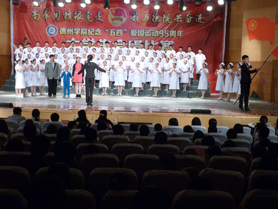 2014年5月4日,“高举团旗跟党走,青春唱响德院梦”——德州学院纪念“五四”爱国运动95年大学生合唱比赛决赛在南校区音乐厅拉开帷幕。医药与护理学院凭借《国家》最终获得三等奖。