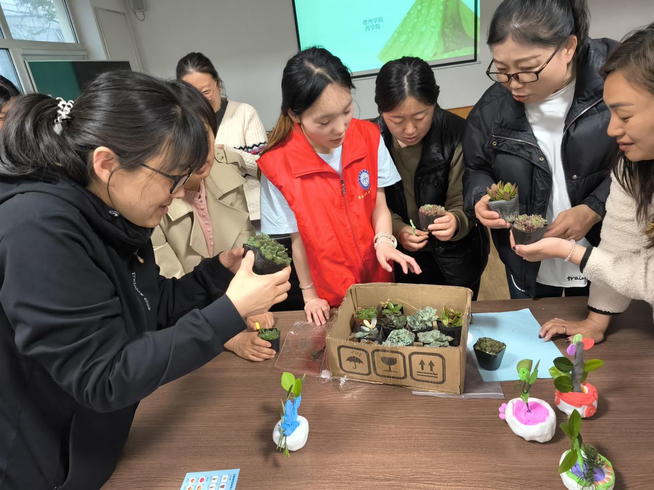 此次活动通过“知识科普、创意实践、绿色传递”三位一体模式,让环保理念深入人心。志愿者化身科普先锋,依托精心制作的PPT,结合通俗易懂的语言,围绕全球气候变暖、生物多样性锐减等生态等问题,深入浅出地讲解垃圾分类、低碳出行等日常环保举措。并通过专业赋能,科普了用药安全和药物环保知识,让居民深刻认识到环保的紧迫性与重要性。志愿者与居民共同制作太空泥仿真盆栽。大家发挥创意,用五彩太空泥塑造出造型各异的“盆栽”,巧妙搭配树叶装饰,作品既充满艺术感,又彰显对绿色生活的向往。活动最后,志愿者向居民赠送多肉盆栽,并附上亲手书写的环保寄语卡片。