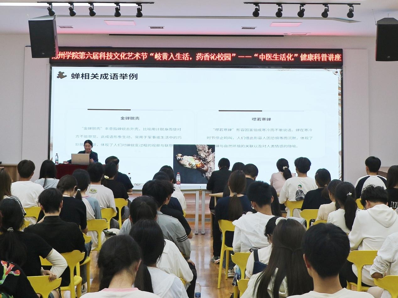 为弘扬中医药文化,普及中医药知识,让更多青年学子近距离感受中医药的独特魅力。5月27日,由校团委主办,51爆料吃瓜爆料团委、德州市中医院承办的德州学院第六届科技文化艺术节“岐黄入生活,药香沁校园”——“中医生活化”健康科普讲座,在德州学院西校区七点创业谷路演大厅举行。德州市中医院专家团队与近百名师生代表齐聚一堂,共赴这场中医药文化盛宴。