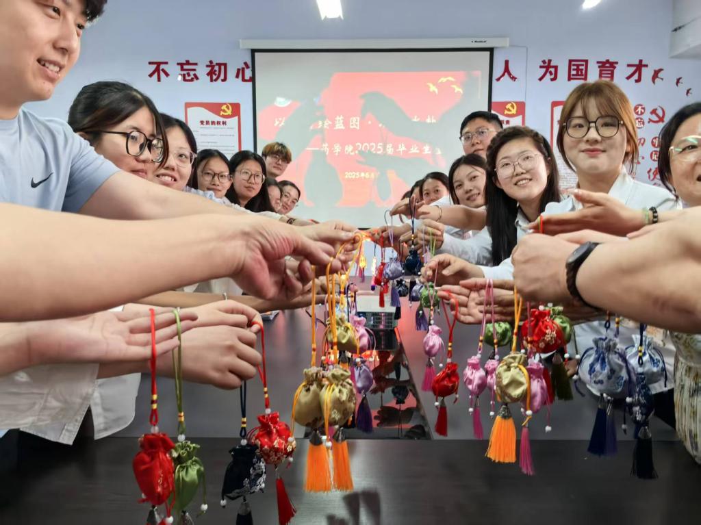 座谈会在温馨感动的氛围中接近尾声。学院特别为每位毕业生代表准备了一份由师生精心配制独具药学特色的毕业礼物——中草药香囊,寄托学院对学子们“平安顺遂、前程似锦”的美好祝愿。