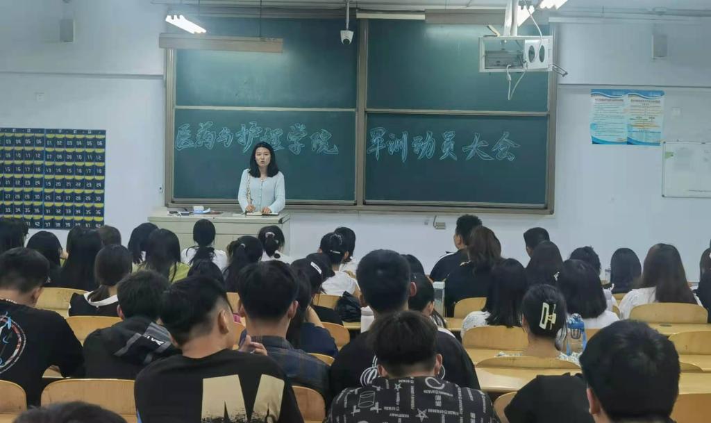 829晚上医药与护理学院求实楼举行了2021级新生军训动员大会,学院辅导员、2021级全体新生参加了此次大会。