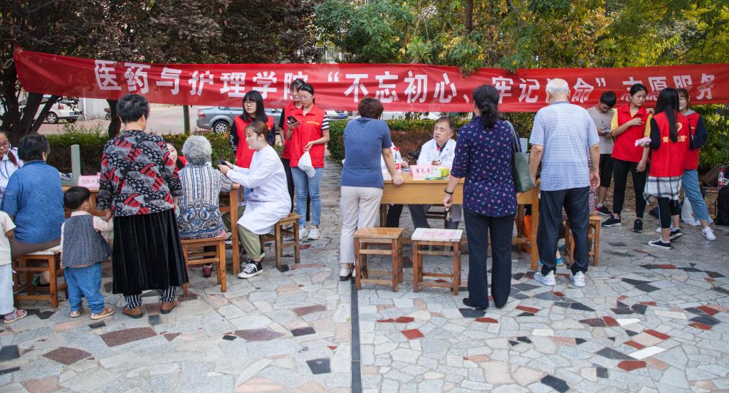 他们走进学府家园,为退休老教师查体,宣讲健康知识,宣传新中国成立七十周年伟大成就,宣传主题教育为民初心,重温入党誓词,志愿为民服务,开展医养健康知识宣讲,进行健康检查咨询等系列活动,旨在主题教育工作中,发挥党员先锋模范作用,树牢为民服务的初心,在组织群众、宣传群众、凝聚群众、服务群众中,发挥高校党组织优势,党员知识优势和专业优势,让居民切实感受到党执政为民、心系群众的温暖。