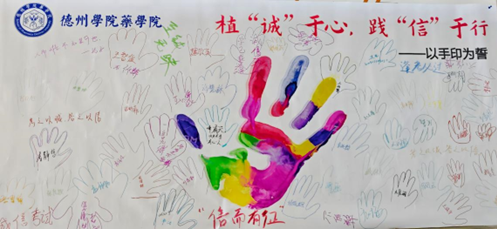 在学院的教育引导下,同学们将诚信意识内化于心,并自发组织“植‘诚’于心,践‘信’于行——以手印为誓”主题活动。全体同学庄严宣誓,并在诚信考试倡议书上郑重签名。这一充满仪式感的环节,不仅是同学们主动作出的对诚信准则的坚定认同,更是一份沉甸甸的自我约束与庄严承诺践诺,活动现场庄重而热烈,诚信理念深入人心。