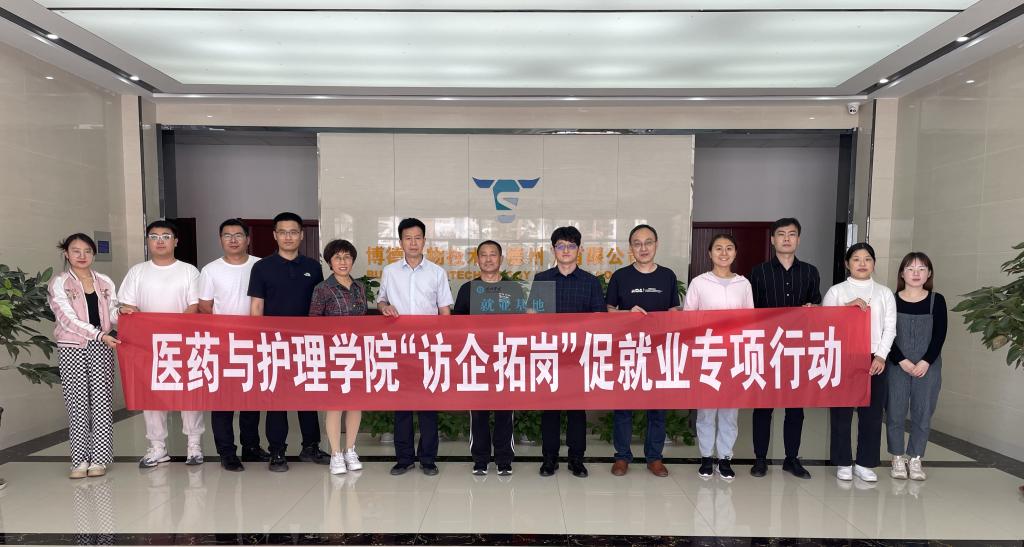 为扎实开展访企拓岗促就业专项行动,进一步深入了解行业发展动态,推动产教融合,拓宽就业信息渠道,稳步推进就业工作,5月19日上午,医药与护理学院一行5人,实地走访了博德生物技术(德州)有限公司。