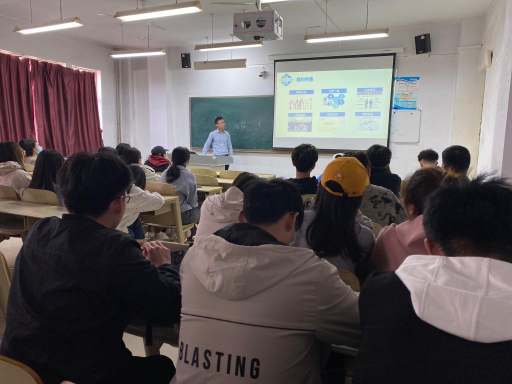 宣讲会开始,负责人首先播放公司宣传片,介绍公司坚持以维护人类健康为宗旨,以满足社会需求为己任,以先进的科学技术依托,致力于研发治疗常见病及多发病药物。之后,负责人又从公司背景、公司现状及实习生发展、对人才培养等方面作了具体介绍。最后,负责人介绍了大家十分关心的薪酬问题以及岗前培训、工作地点和时间等等,这一环节点燃了本次宣讲会的高潮,加深了同学们对各个岗位的了解。会后,同学们向企业负责人深入咨询招聘计划等事项,更加明确了自己的就业需求。