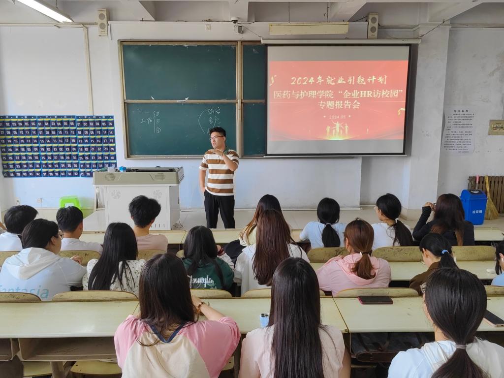 为切实做好2024届毕业生就业工作,搭建毕业生与用人单位交流平台,引导同学们科学规划未来的职业发展道路,医药与护理学院于2024年5月23日在体育楼301举办“企业HR访校园”专题报告会。报告优秀校友邀请赛诺菲中国投资有限公司地区经理王磊和江苏恒瑞医药股份有限公司临床监察员韩启奎为在校生开展职业规划指导。