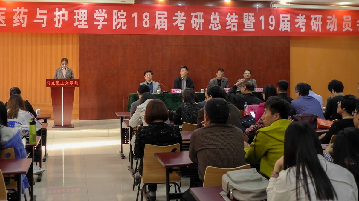 2018年4月24日下午,医药与护理学院在博文楼347报告厅召开2018届考研总结暨2019届考研动员会,学院领导班子、全体教师、2015级本科全体学生、2016级和2017级学生代表参加了会议。会议由董茂江副院长主持。
