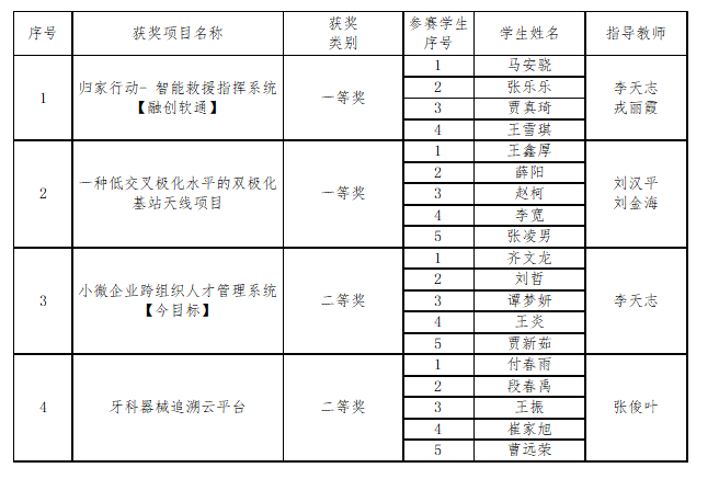 四、关于公布第十二届中国大学生服务外包创新创业大赛德州学院校级赛成绩的通知