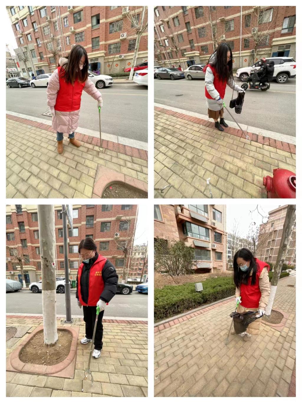 志愿者分成两组,两人协助物业入户,两人进行卫生帮扶。党员教师到岗到位,全身心投入到志愿服务中,尽管天气寒冷,但他们志愿服务的热情一点也未减,他们捡垃圾、清杂物、搞劝导,人到心到,尽心尽力,履职尽责。