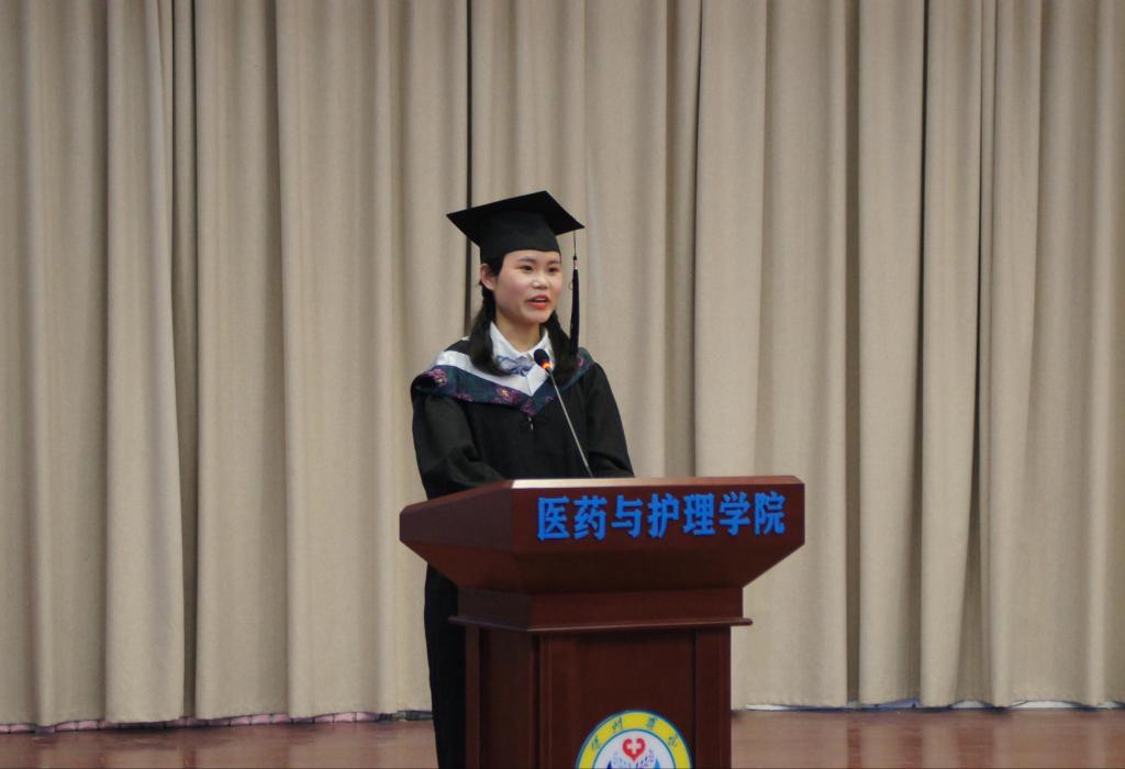 毕业生代表2018级护理学本科毕业生李洋洋表示,将不负领导、老师、家长和校友们的期盼,秉承德院精神,踔厉奋发,尽职尽责,让青春焕发出更加绚丽的光彩。