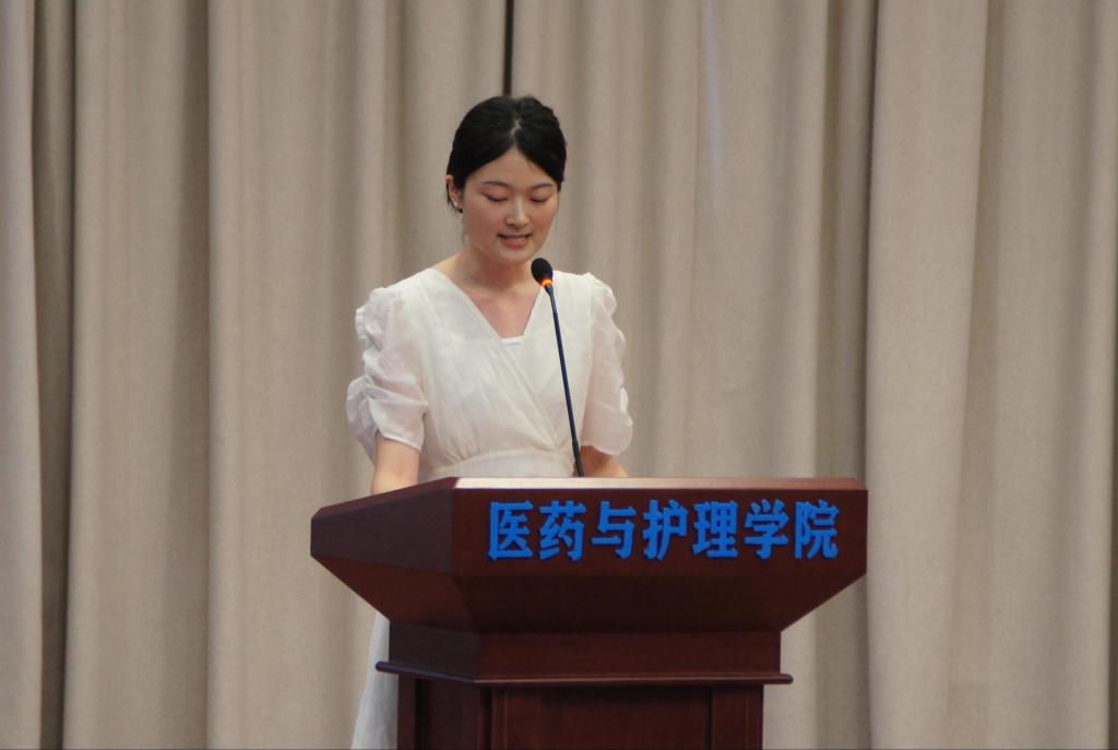 在校生代表2019级生物制药专业杜金洋表示,将以学长学姐为榜样,接过他们手中的接力棒,成为困难面前的“排头兵”,危难时的“领头羊”,努力拼搏,学有所成。