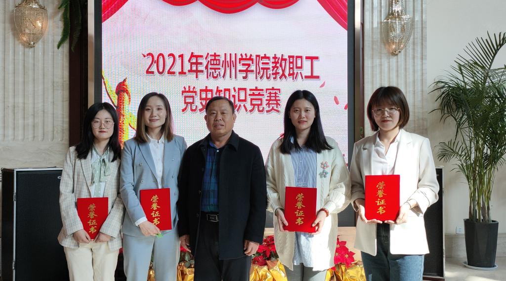 德州学院工会与德州奏嘛新闻、康博置业公司联合举办的“庆祝建党100周年党史知识竞赛”活动于2021年4月24日下午圆满落幕,医药与护理学院工会代表队顺利进入决赛并荣获亚军。