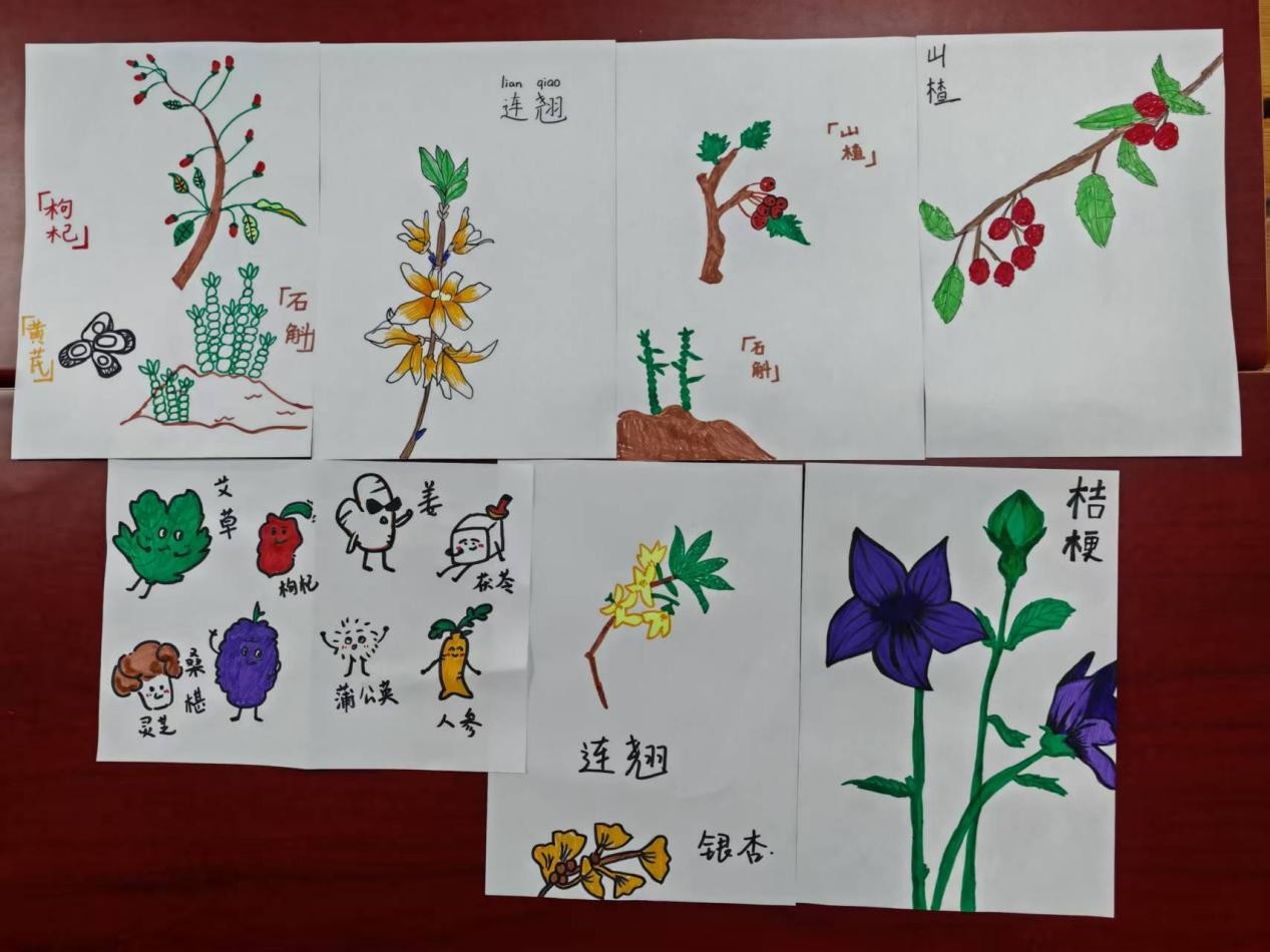 活动打破传统传播模式,将抽象的中医药文化转化为直观可感的视觉艺术。同学们以笔为媒,精心勾勒枸杞的殷红饱满、甘草的温润舒展、菊花的清雅脱俗、丹参的绛紫醇厚,将中药的形态特征与文化内涵巧妙融入画作。作品兼具观赏性与知识性,充分展现了青年学子对中医药文化的独特理解。