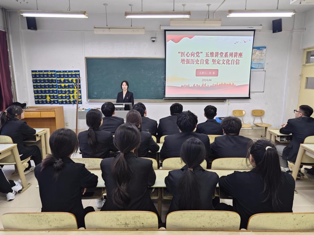 为贯彻落实习近平新时代中国特色社会主义思想,了解中华文明五千多年发展史,推动全党全社会增强历史自觉、坚定文化自信,2024年4月9日,医药与护理学院开展了“医心向党”五维讲堂系列讲座之增强历史自觉、坚定文化自信的专题讲座。学生党员代表孙睿同志主讲,第一学生党支部全体党员参加。