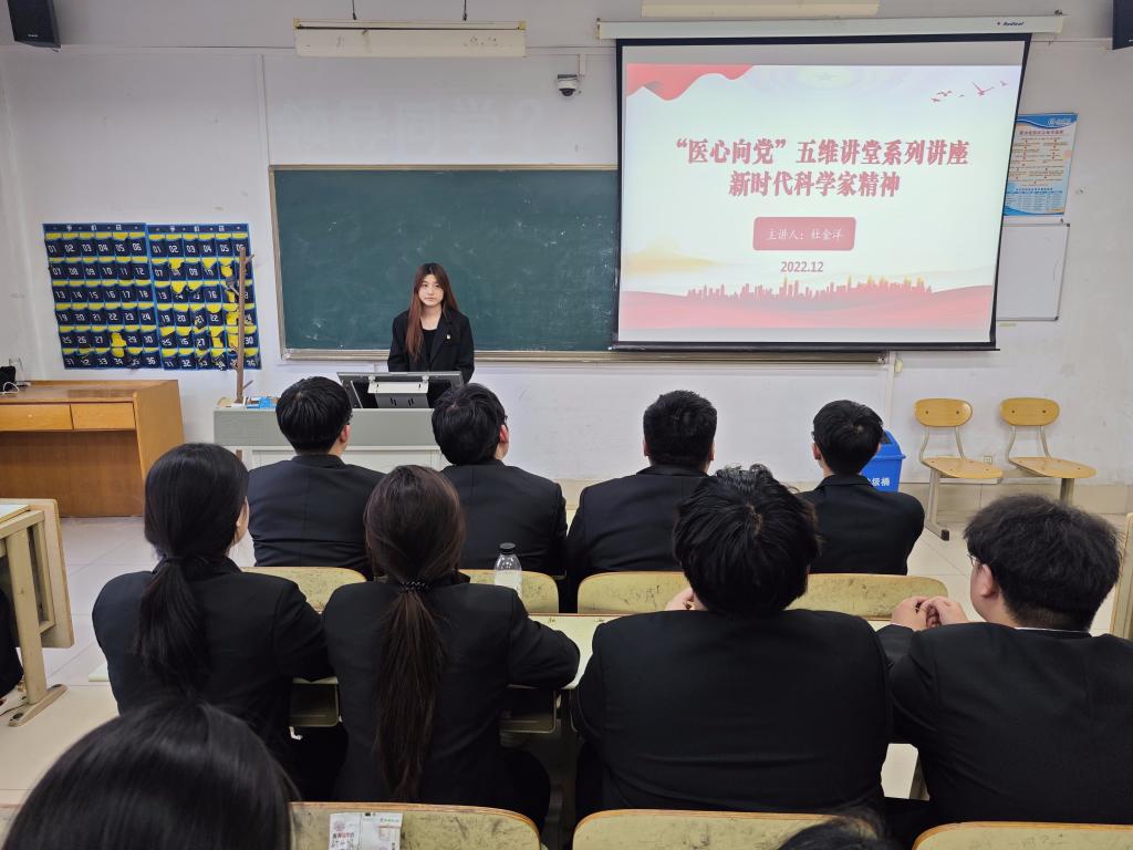 为深入贯彻党的教育方针,培养具备科学家精神的青年党员,医药与护理学院于2022年12月20日开展了“医心向党”五维讲堂系列讲座之新时代科学家精神主题讲座,讲座由学生党员代表杜金洋主讲,第一学生党支部全体党员参加。